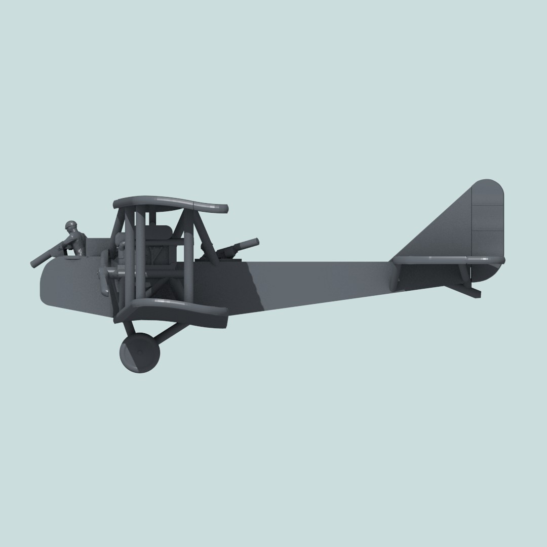 This is a paintable 1:144 scale model of an A.E.G. G.II with a single rudder and armored fuselage. A version with a triple rudder and standard fuselage is also available. Since many painters choose their own mounting system, no peg is included on the plane. Pegs can be purchased separately in the Accessories section of this catalog.