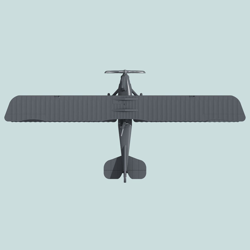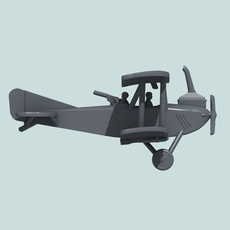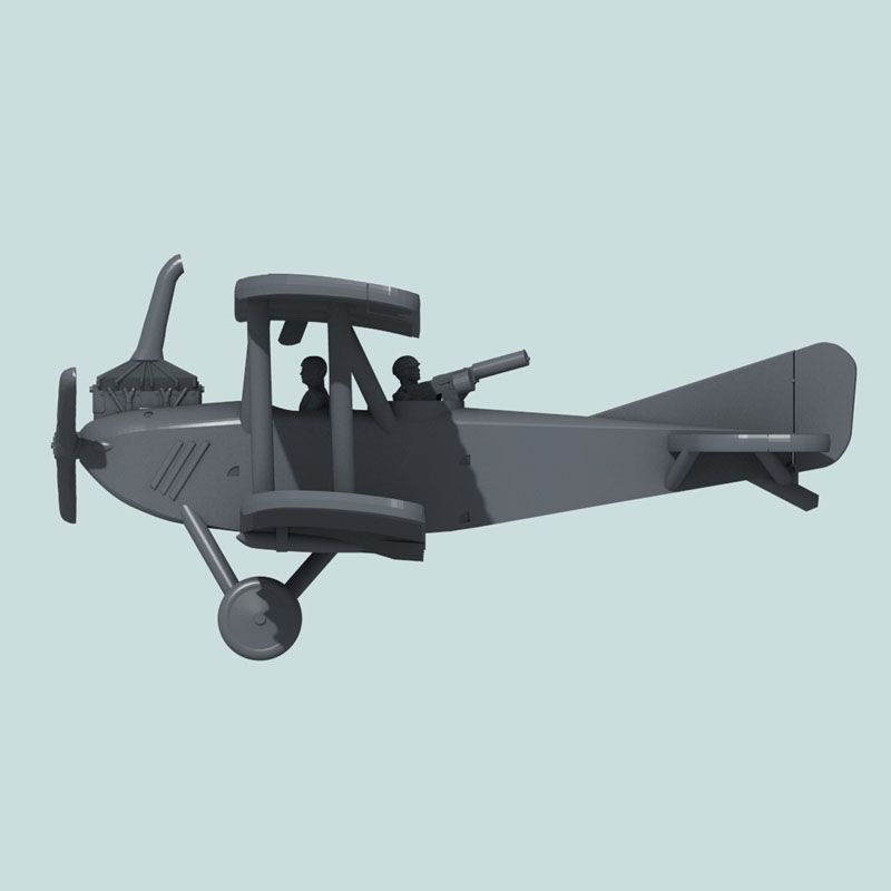 This is a paintable 1:144 scale model of an A.E.G. N.I night bomber, including the wide wingspan and top-wing landing lights. Since many painters choose their own mounting system, no peg is included on the plane. Pegs can be purchased separately in the Accessories section of this catalog.
