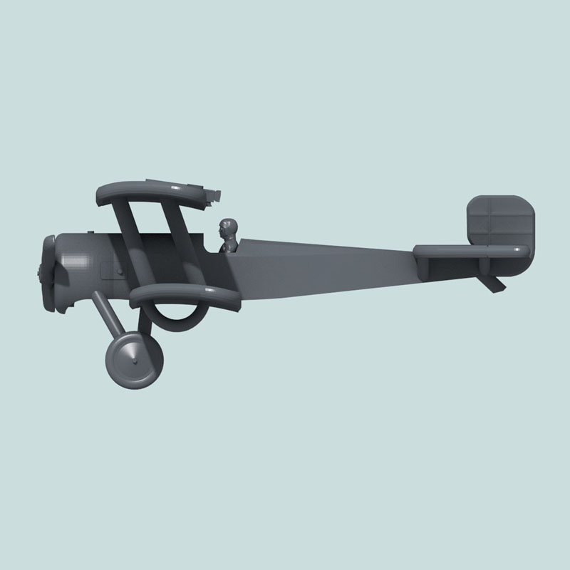 This is a paintable 1:144 scale model of a Bristol Scout C with a top-wing Lewis gun. Also available is a Bristol Scout D with a synchronized Vickers gun. Since many painters choose their own mounting system, no peg is included on the plane. Pegs can be purchased separately in the Accessories section of this catalog.