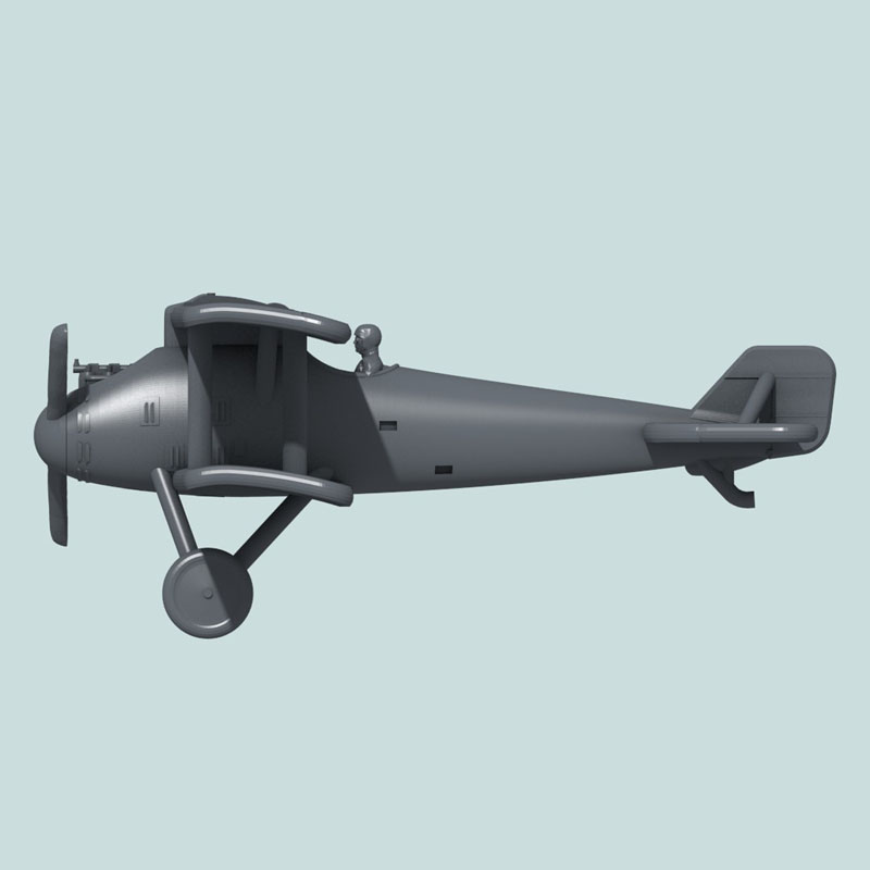 This is a paintable 1:144 scale model of a German L.F.G. Roland D.II. Since many painters choose their own mounting system, no peg is included on the plane. Pegs can be purchased separately in the Accessories section of this catalog.