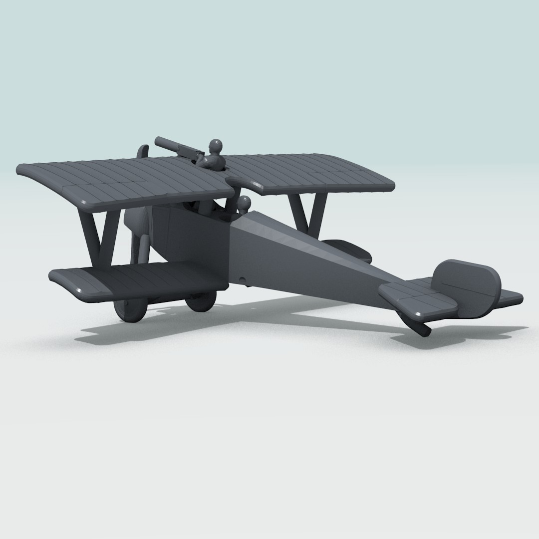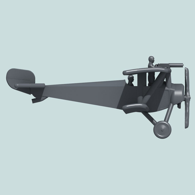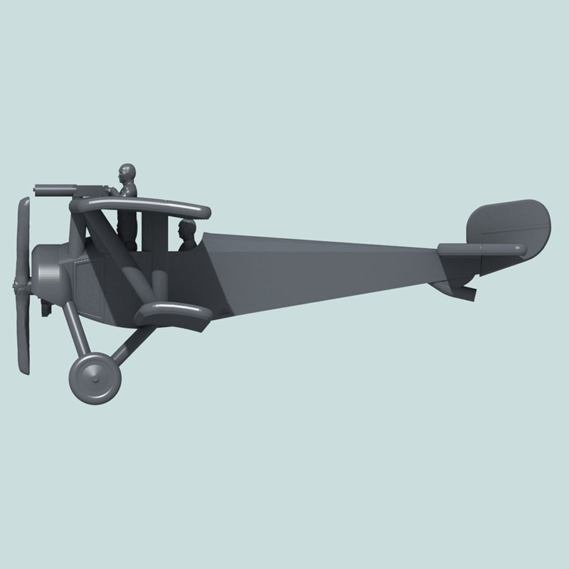 This is a paintable 1:144 scale model of a Nieuport 10 two-seater with a front-seated observer. Four different Nieuport 10s are available: an unarmed two-seater, a single-seat fighter, this Nieuport 10AR with a standing front-firing gunner, and a 10AV with a rear-firing gun. Since many painters choose their own mounting system, no peg is included on the plane. Pegs can be purchased separately in the Accessories section of this catalog.