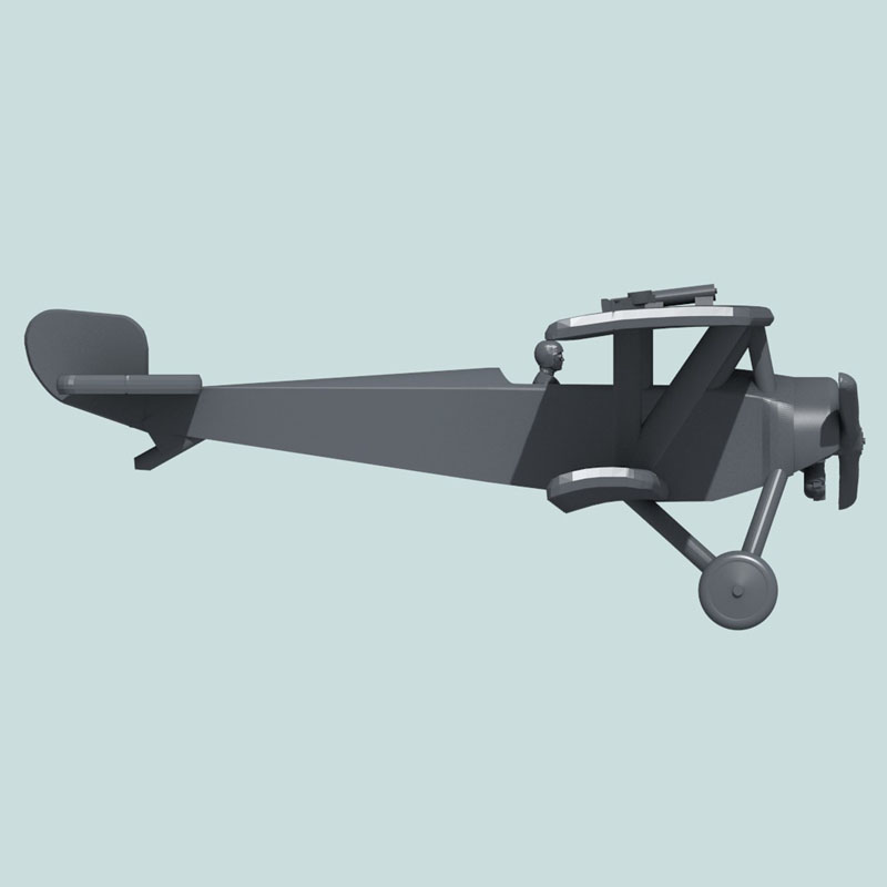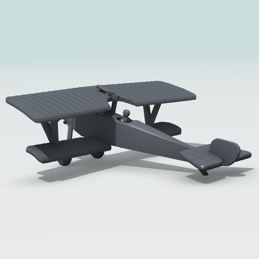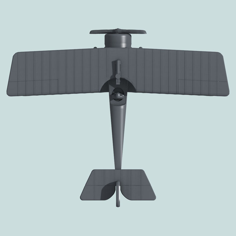 This is a paintable 1:144 scale model of a single-seat Nieuport 12 scout. Since many painters choose their own mounting system, no peg is included on the plane. Pegs can be purchased separately in the Accessories section of this catalog.