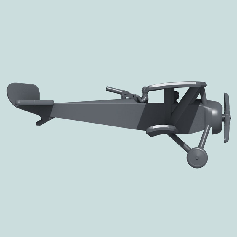 This is a paintable 1:144 scale model of a Nieuport 12bis with a full cowl and 130hp Clerget engine. Since many painters choose their own mounting system, no peg is included on the plane. Pegs can be purchased separately in the Accessories section of this catalog.