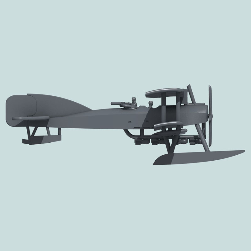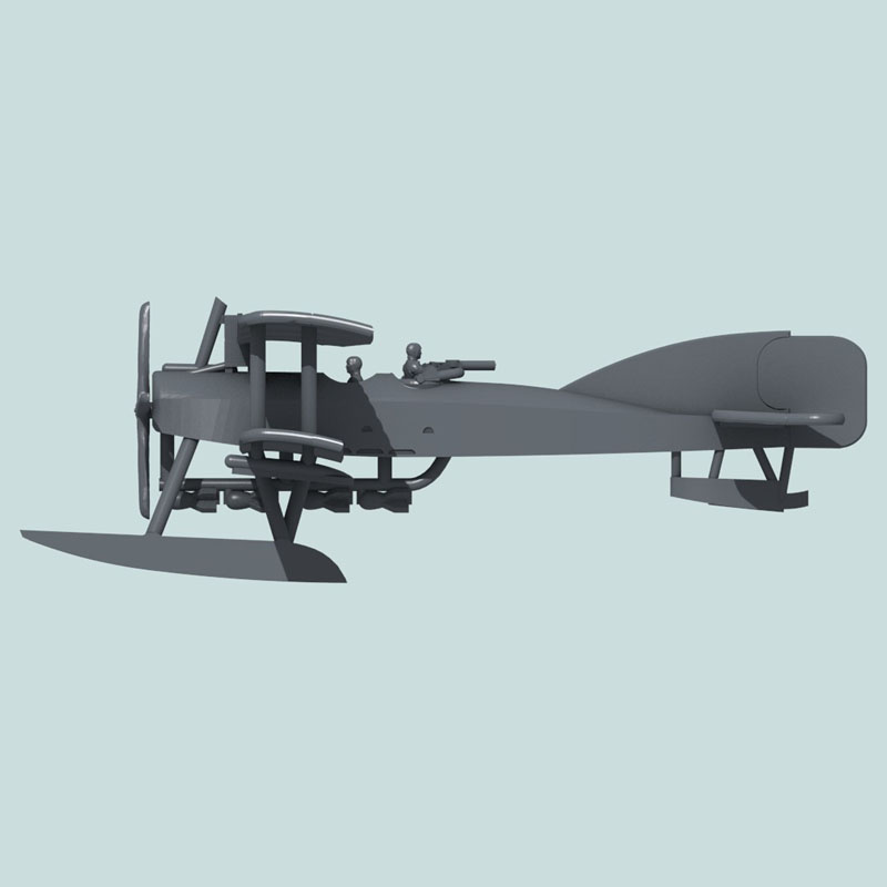 The Short Seaplane, Admiralty Type 184 was designed to carry a torpedo. Long folding wings and the characteristic large fin of the Short seaplanes make it quickly recognizable. In the Dardanelles campaign, it became the first plane to sink an enemy ship with a torpedo when a Short 184 attacked a Turkish steamer on 12 June 1915. The weight of a torpedo, however, severely limited the plane’s range and operating conditions. More often the Type 184 ran patrol, bombing, and even anti-Zeppelin missions, including the Battle of Jutland. While most served in the North Sea and from seaplane-carriers, a few were sent to Mesopotamia in February 1916. As the war progressed, the original 225hp Sunbeam engine was replaced with more powerful Sunbeams and Renaults.