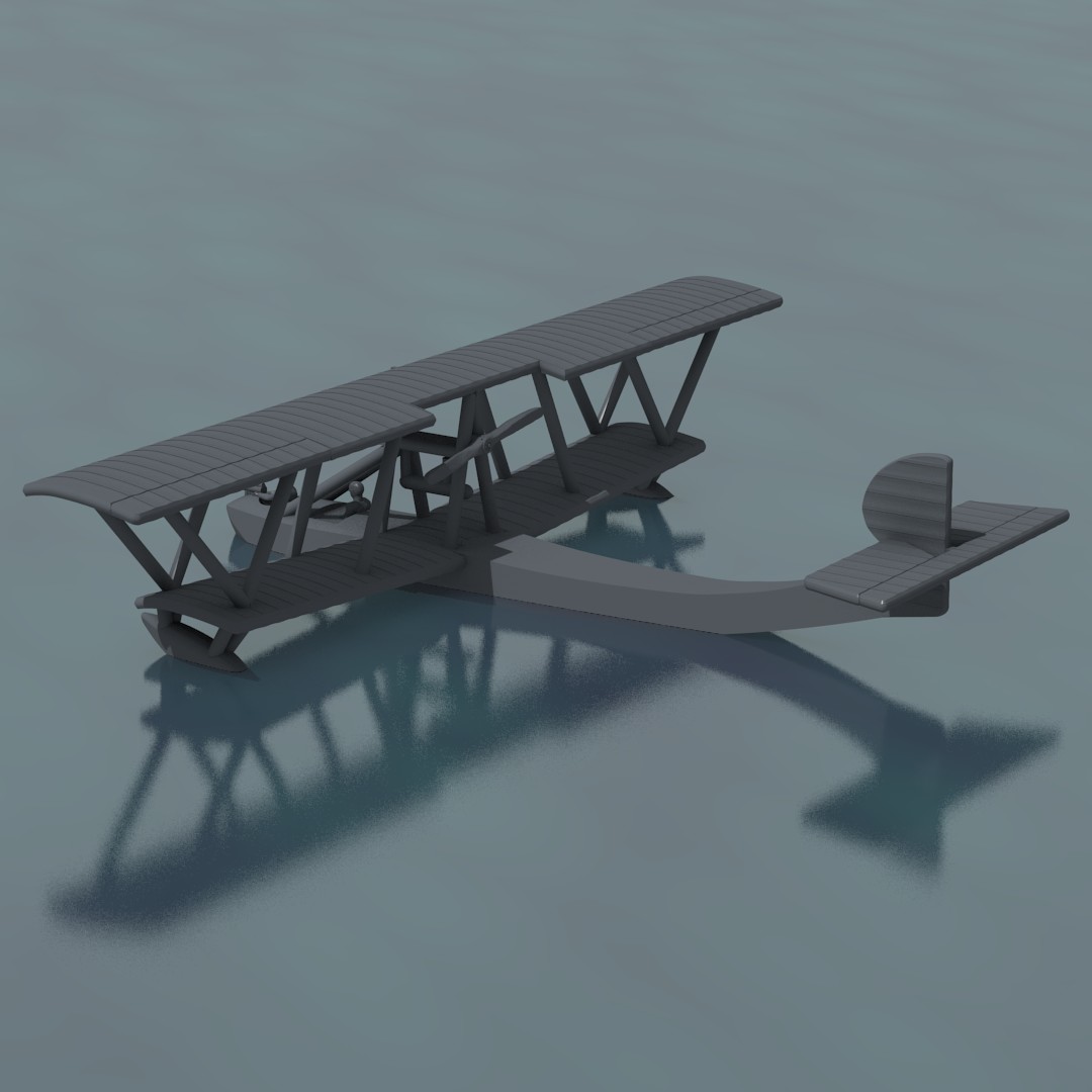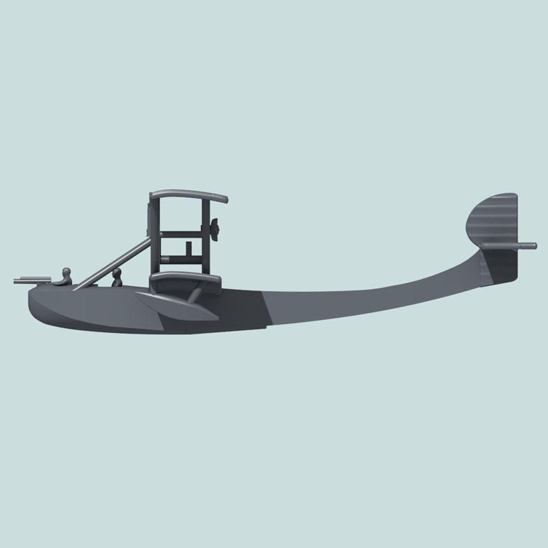 This is a paintable 1:144 scale model of a cannon-armed Tellier T.6 Flying Boat. Since many painters choose their own mounting system, no peg is included on the plane. Pegs can be purchased separately in the Accessories section of this catalog.
