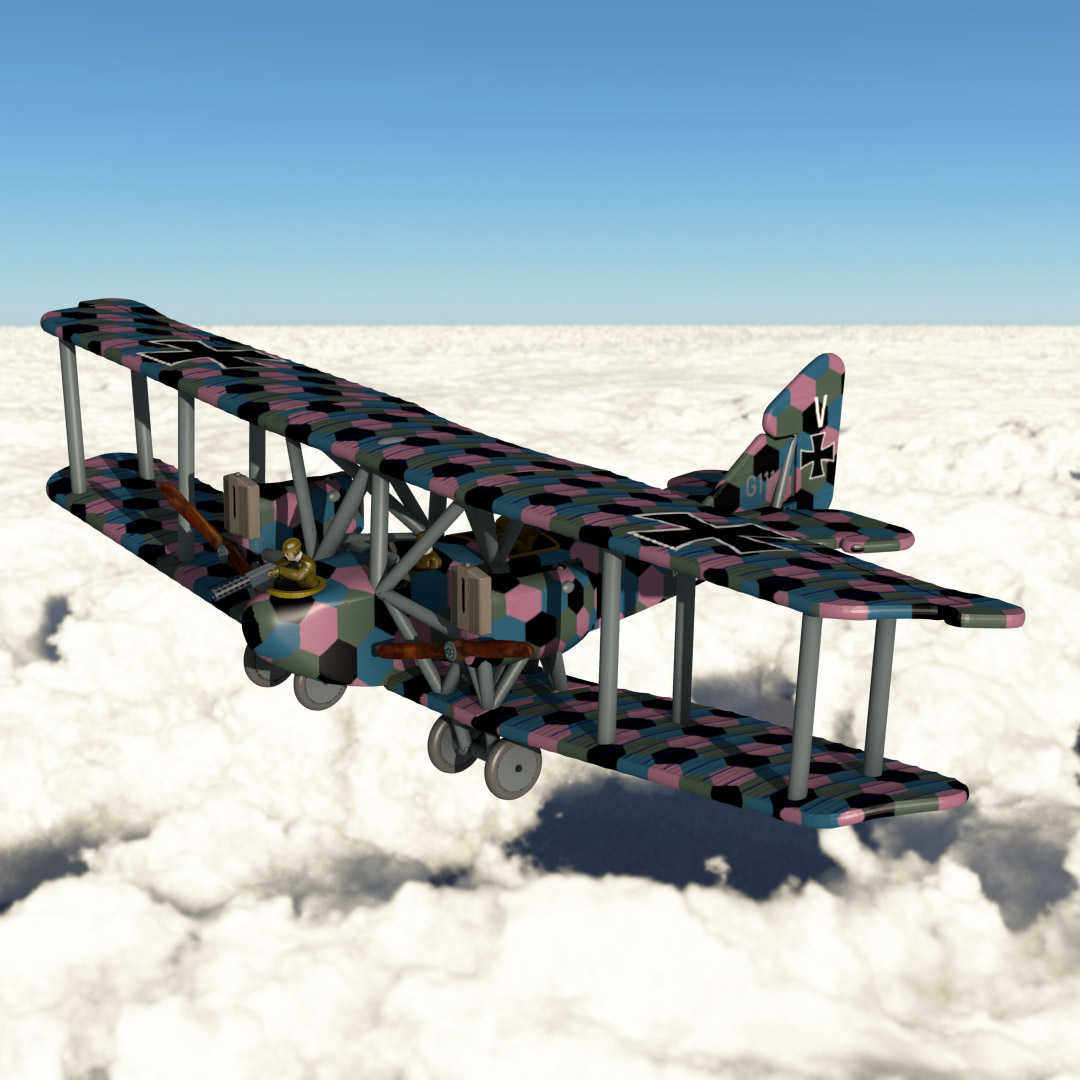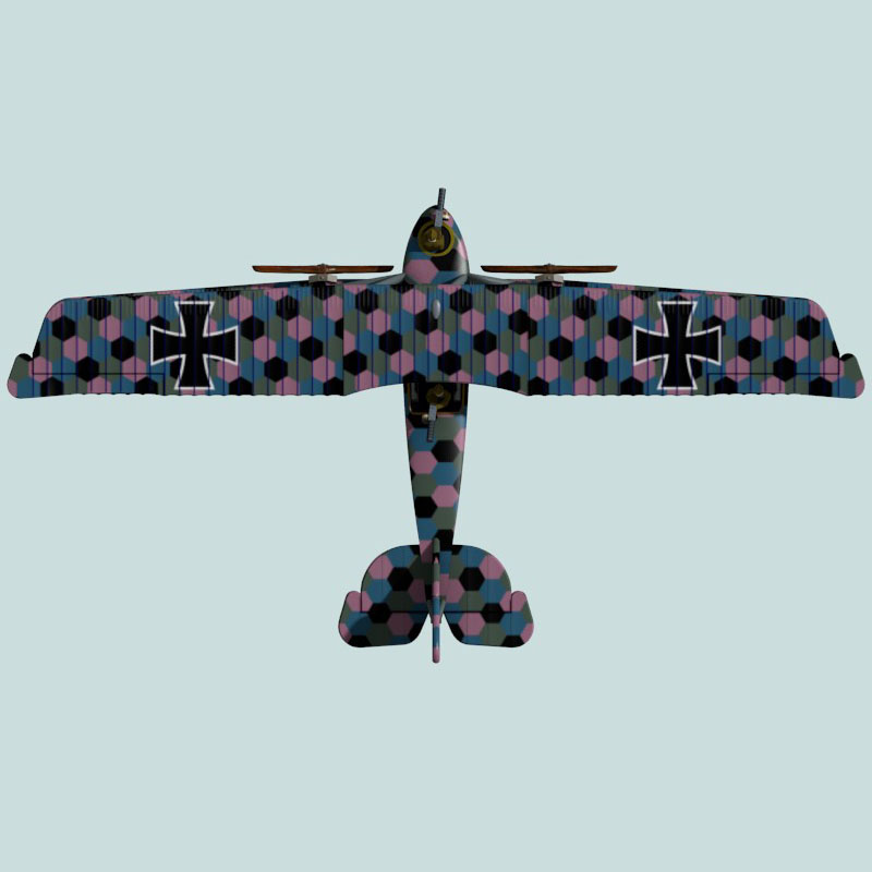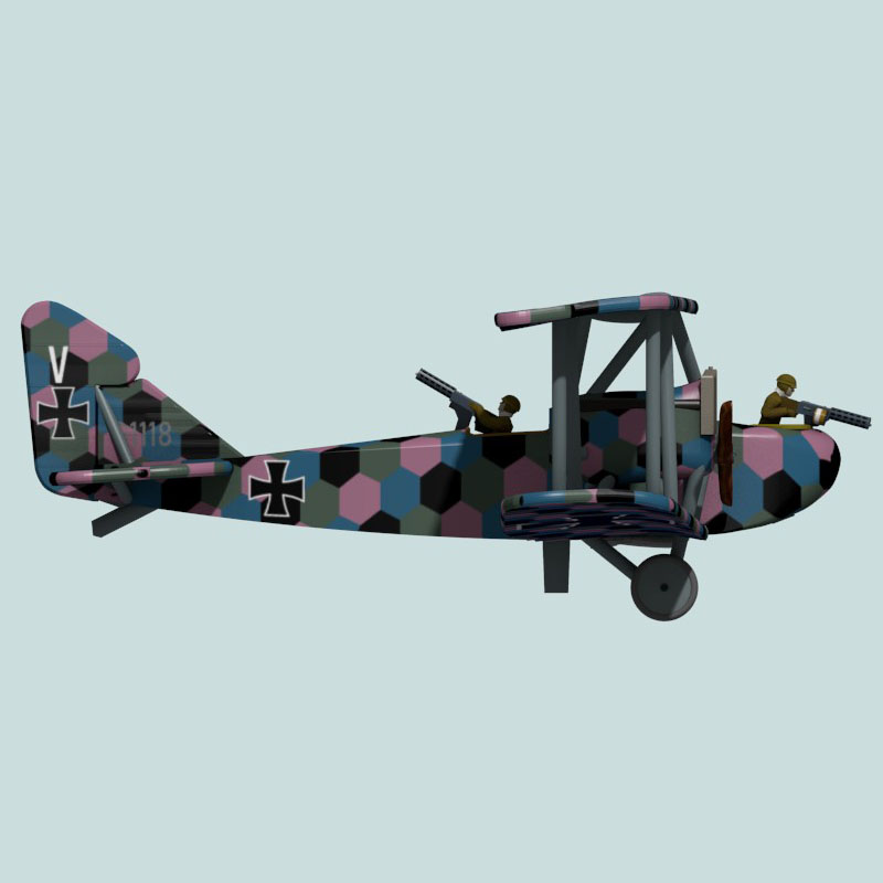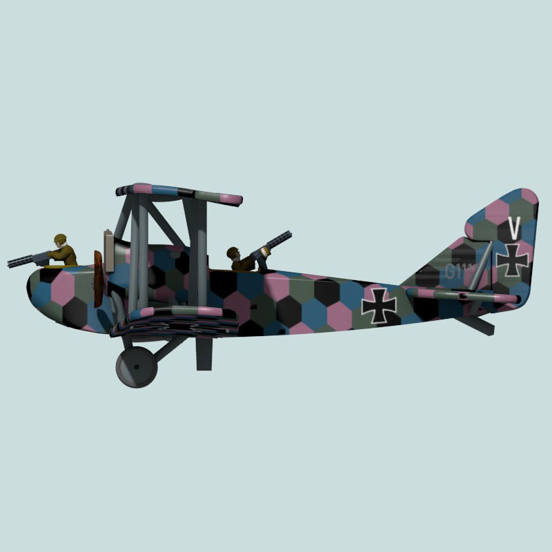 This is a full-color 1:144 3D print of A.E.G. G.IV 1118/16, perhaps of Bogohl IV. The G.IV was a robust workhorse that gets overlooked because it wasn’t used to bomb England. Instead, it operated as a medium-range tactical bomber and increasingly as a night bomber as time passed. Mid-production G.IVs were covered a hand-painted four-color hexagonal night-bomber scheme like 1118/16.