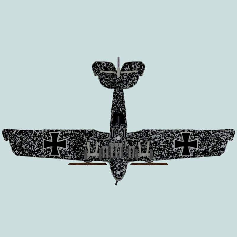 No painting is necessary — this model comes printed in full color, ready to use. The model does not come with a flight stand, maneuver deck, or plane card. You can find an unofficial plane card for this plane in this paint scheme in the gallery on this page.