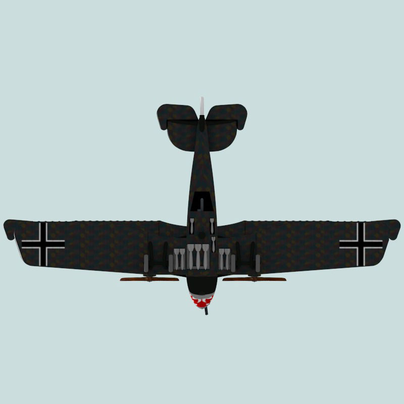 No painting is necessary — this model comes printed in full color, ready to use. The model does not come with a flight stand, maneuver deck, or plane card. You can find an unofficial plane card for this plane in this paint scheme in the gallery on this page.