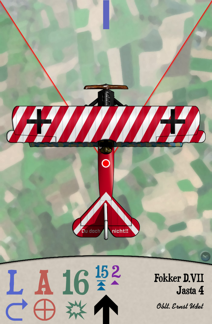 The striped-wing Fokker D.VII(O.A.W.) of Oberleutnant Ernst Udet of Jasta 4