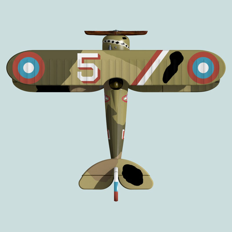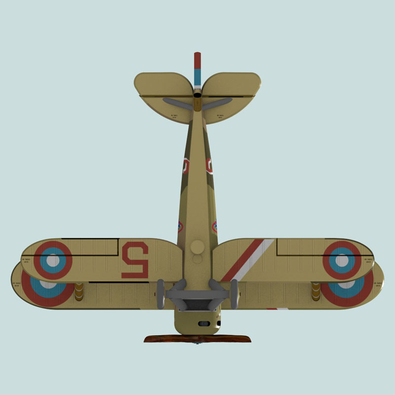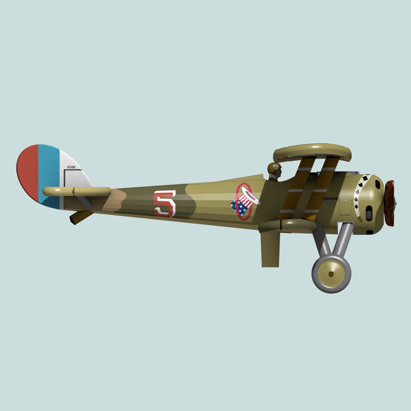 This is a full-color 1:144 3D print of Nieuport 28 N6168 of First Lieutenant John Wentworth of the 94th Aero Squadron, U.S. Air Service. John Wentworth’s most famous contribution to WWI History may not be his flying career, it is that he – as a talented artist – designed the 94th Aero Squadron “hat-in-the-ring” emblem.  He probably also painted the snake on his plane’s cowl (the colors of which are speculative).