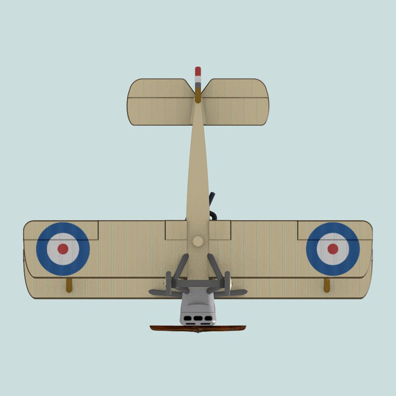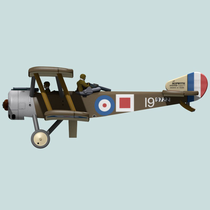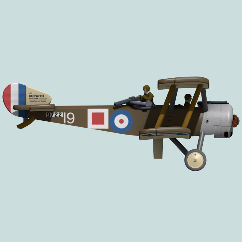 This is a full-color 3D print of Sopwith 1½ Strutter 9722 of 3 Naval Wing, Royal Navy Air Service. This plane was frequently flown by Flight Lieutenant John D. Newberry and Petty Officer (gunner) Rees, but it was also flown on raids by MacLennan and Clegg, Macgregor and Allatsen, and Macgregor and Lockyer. On 10 Nov 1916 Newberry and Rees downed an enemy fighter while flying 9722 and defending A.B. Shearer in N5088.
