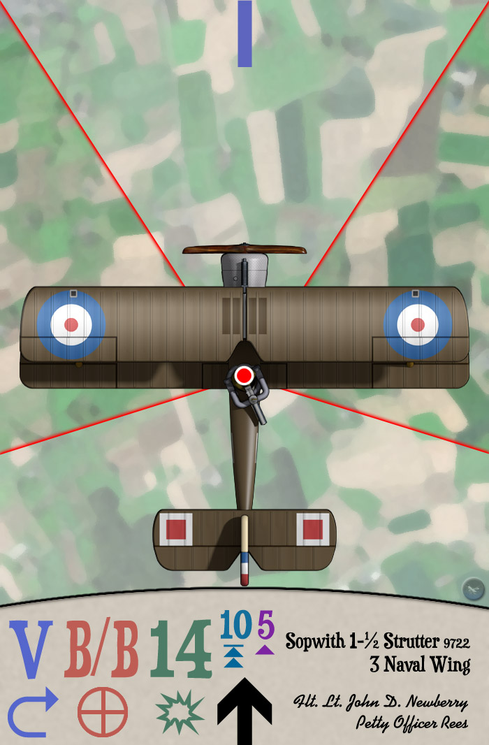 Sopwith 1½ Strutter 9722 of 3 Naval Wing, RNAS, as flown by Flight Lt. John D. Newberry and Petty Officer Rees