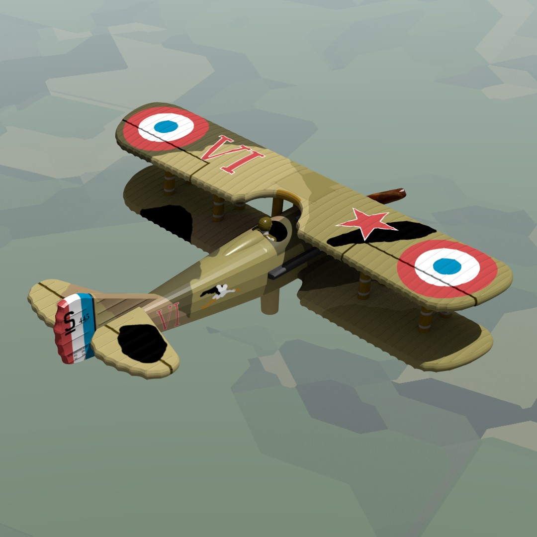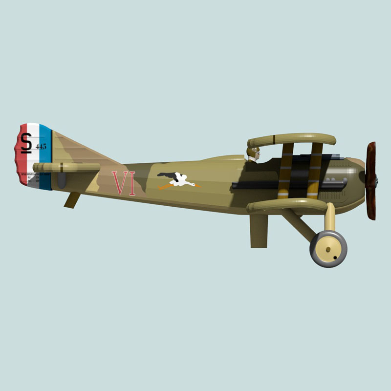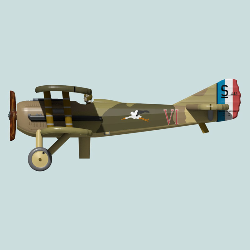 This is a full-color 1:144 3D print of SPAD 12 445 of Sous-Lieutenant René Fonck of SPA 103 Escadrille. Fonck